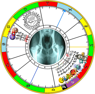 Uznemirujući i kristalizirajući planet nalazimo u 23° 40' Strijelcu u sprezi s upalnim Marsom i suprotno Neptunu i Zmajevog repa. Neptun vlada kralježnicom ili spinalnom tekućinom kako ga liječnici nazivaju. Neptun nalazimo zajedno s Zmajevim repom u znaku Blizanaca, koji vlada nad rukama i regijama 6. i 7. cervikalne te 1., 2. i 3. leđne kralješnice. Mars i Saturn nalazimo u području donjeg dijela kralježnice, sakralnog ili sarko- tretskog područja. Saturn, kada ga Neptun ometa, daje vrlo duboko usamljenu bolest, ono što jeste teško za razumjeti. Saturn kada je uznemiren, također suši sinovijalnu tekućinu zglobova gdje god se može postaviti. Kada se zajedno s Marsom na sakralnom području očekujemo nevolje, jer je Mars vruć i upalni, a Saturn je hladan i vlažan, s ograničavajućim utjecajem.